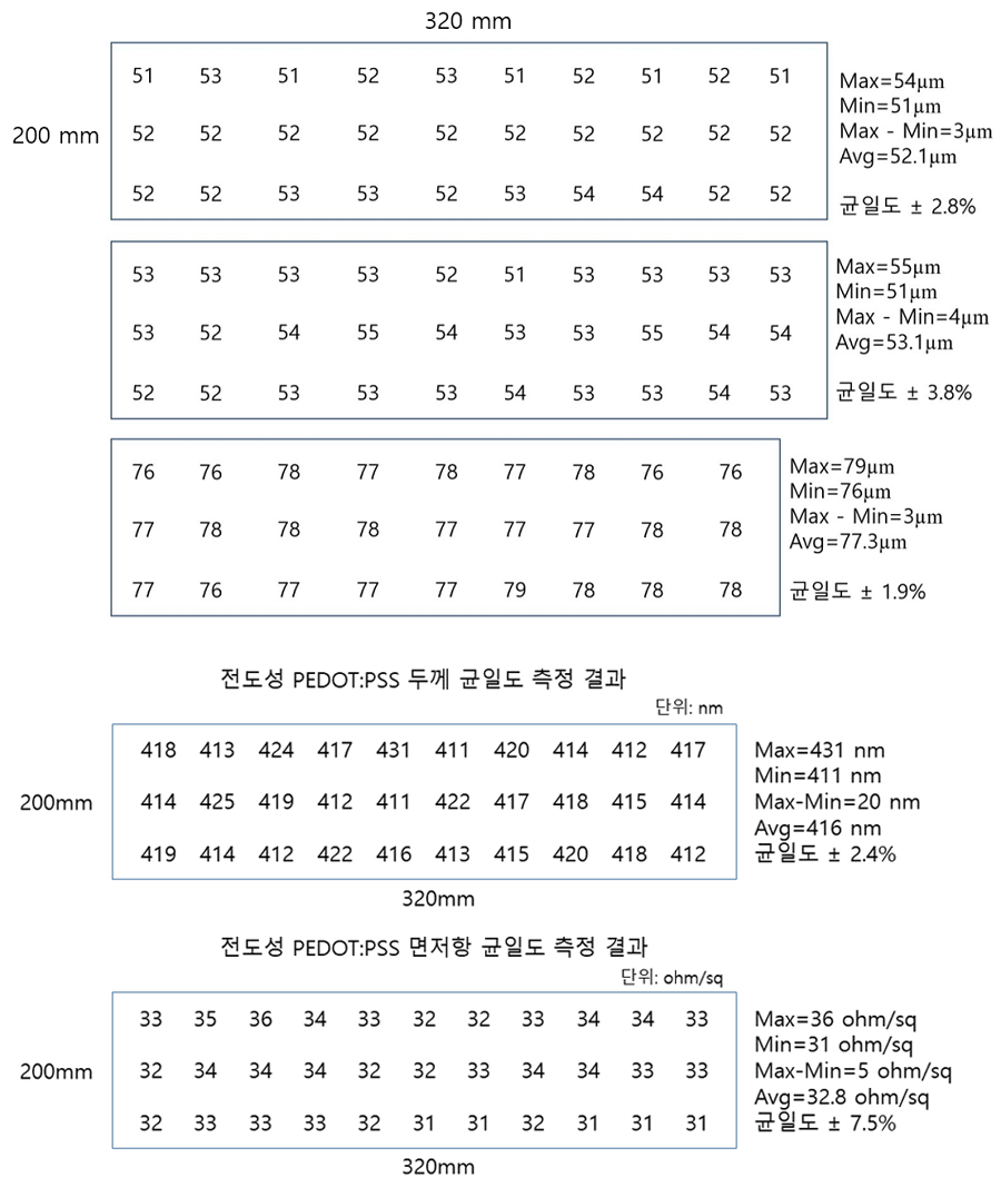 PDMS 코팅막 두께 균일도 측정 결과